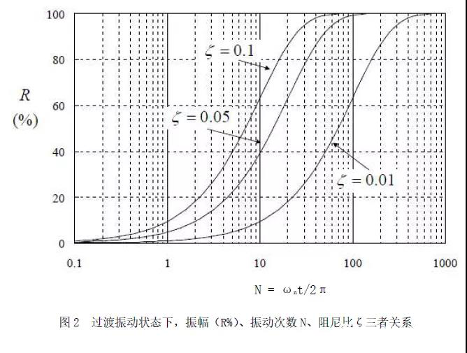 共振频率正弦振动次数N=ωnt/2π、ζ(Q值)、R%三者之间的曲线如下图2,